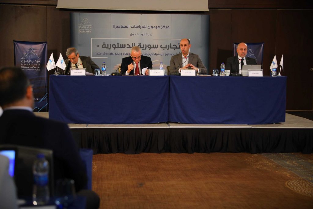 بدأت، اليوم السبت، 21 كانون الأول/ ديسمبر 2019، في مدينة إسطنبول التركية، أعمال اليوم الأول من الندوة الحوارية الموسّعة التي ينظمها مركز حرمون للدراسات المعاصرة، حول “تجارب سورية الدستورية”، وذلك بمشاركة عدد كبير من الباحثين والمختصين والخبراء في القانون الدستوري والقانون العام والسياسة والاجتماع والاقتصاد والإدارة.