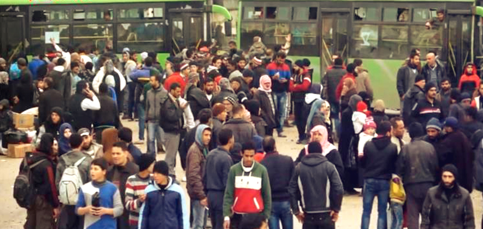 التهجير القسري جريمة ترقى إلى جريمة حرب. وتجميع رجال الثورة وعائلاتهم في إدلب جريمة أكبر. سؤال كبير بعلامة كبيرة؟