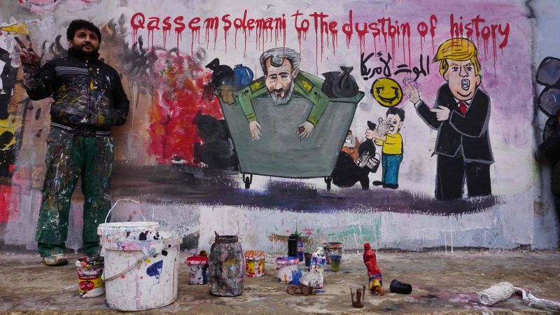 احتفل الفنان السوري عزيز الأسمر، في بنش بإدلب، بلوحته الجدارية، حيث تمثل بنش أجمل ما في ذاكرة الثورة السورية، والتقط صورة له وقد وضع قاسم سليماني في مزبلة التاريخ، ووزع السوريون الحلويات في مختلف أماكن تهجيرهم، فرحًا بمقتل جزار سورية قاسم سليماني، فقد اغتالت القوات الأميركية، ليل الخميس الجمعة، الثاني والثالث من كانون الثاني/ يناير 2020، قائد “فيلق القدس” الإيراني قاسم سليماني، وهو الجناح الخارجي للحرس الثوري الإيراني، إضافة إلى نائب رئيس “الحشد الشعبي” بالعراق، واثنين آخرين، قرب مطار بغداد بعد قدوم سليماني من دمشق. وقد أشرف الرئيس الأميركي دونالد ترامب بنفسه على عملية تصفية ثاني أهم رجل في إيران، بعد المرشد الأعلى للجمهورية الإسلامية في إيران علي خامنئي. في رده على اقتحام السفارة الأميركية في بغداد من قبل قوات “الحشد الشعبي” العراقية، وهي ميليشيا إيرانية، وقيامهم بإحراق السفارة في المنطقة الخضراء المعروفة بتحصينها ببغداد، وقد ذكّرت هذه الرسالة الأميركيين باقتحام سفارتهم بطهران عام 1979 وأزمة الرهائن آنذاك. لكن ما هي حقيقة تداعيات قتل أحد أعتى المجرمين والجزارين في سورية والعراق واليمن ولبنان، وهو الذي ساهم في تدمير مدن سورية بكاملها، مثل حلب والغوطة الشرقية، وأنقذ الأسد، وتعاون مع بوتين في ارتكاب جرائم ضد الإنسانية؟