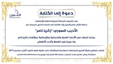 تكريمًا للإنسان السوري والاحتفال به، دعت مجلة قلمون، المجلة السورية للعلوم الإنسانية، المهتمين بإنجازات الأديب السوري زكريا تامر، إلى المشاركة في الكتابة بالملف الرئيس في عددها الحادي عشر، المخصص لدراسة تجربة الأديب السوري المرموق. وفي خطوة لافتة، واحترامًا منها لإبداع الكتّاب وحرية التعبير، فتحت المجلة…