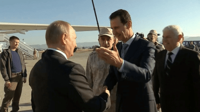 الصورة: بشار الأسد، يرحّب بفلاديمير بوتين، الرئيس الروسي، لدى وصوله إلى قاعدة حميميم الجوية في سورية في 11 كانون الأول/ ديسمبر. (صورة تلفزيونية من الرئاسة الروسية عبر أسوشيتد برس) الحكومة السورية على وشك النصر الكامل في حربها الأهلية، وتخطط لما سيأتي بعد ذلك. لكن النظام…